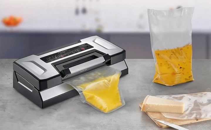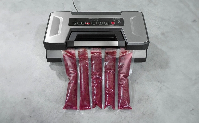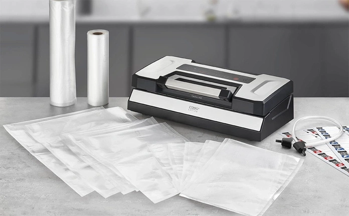 Jakość akcesoriów ma kluczowe znaczenie, aby zapewnić idealne zgrzewanie. Wysokiej jakości folie gwarantują lepsze rezultaty. Profesjonalne folie CASO są odporne na gotowanie i rozdarcia, posiadają żebrowaną strukturę oraz grubość materiału 150 µm, co zapewnia optymalne odsysanie powietrza. Stabilny materiał zapobiega również przebiciu folii przez ostre elementy, takie jak kości czy ości ryb. Profesjonalne woreczki i rolki foliowe CASO są dostępne w różnych rozmiarach. Folie CASO są bezpieczne dla żywności, wielokrotnego użytku (można je myć w zmywarce), odporne na gotowanie, mrożenie i nadają się do użycia w kuchence mikrofalowej.